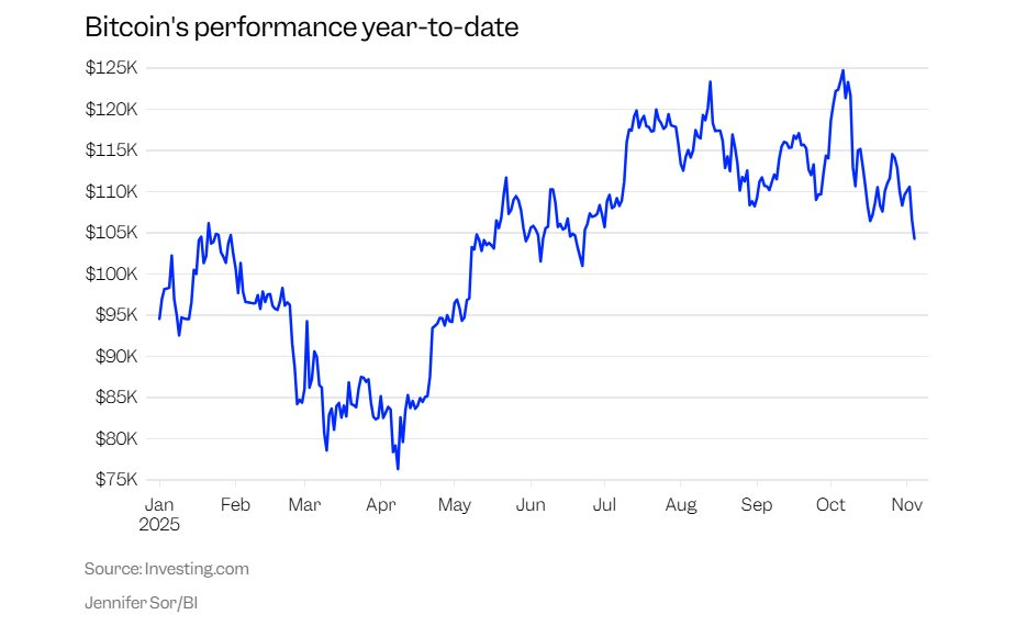 Đồng tiền số này đã trượt xuống dưới ngưỡng 100.000 USD lần đầu tiên kể từ tháng 6, tương ứng mức giảm hơn 21% so với đỉnh mới 126.200 USD ghi nhận ngày 6/10. Giấc mơ “Uptober” – tháng 10 rực rỡ mà giới đầu tư mong đợi – giờ chỉ còn là ảo vọng.